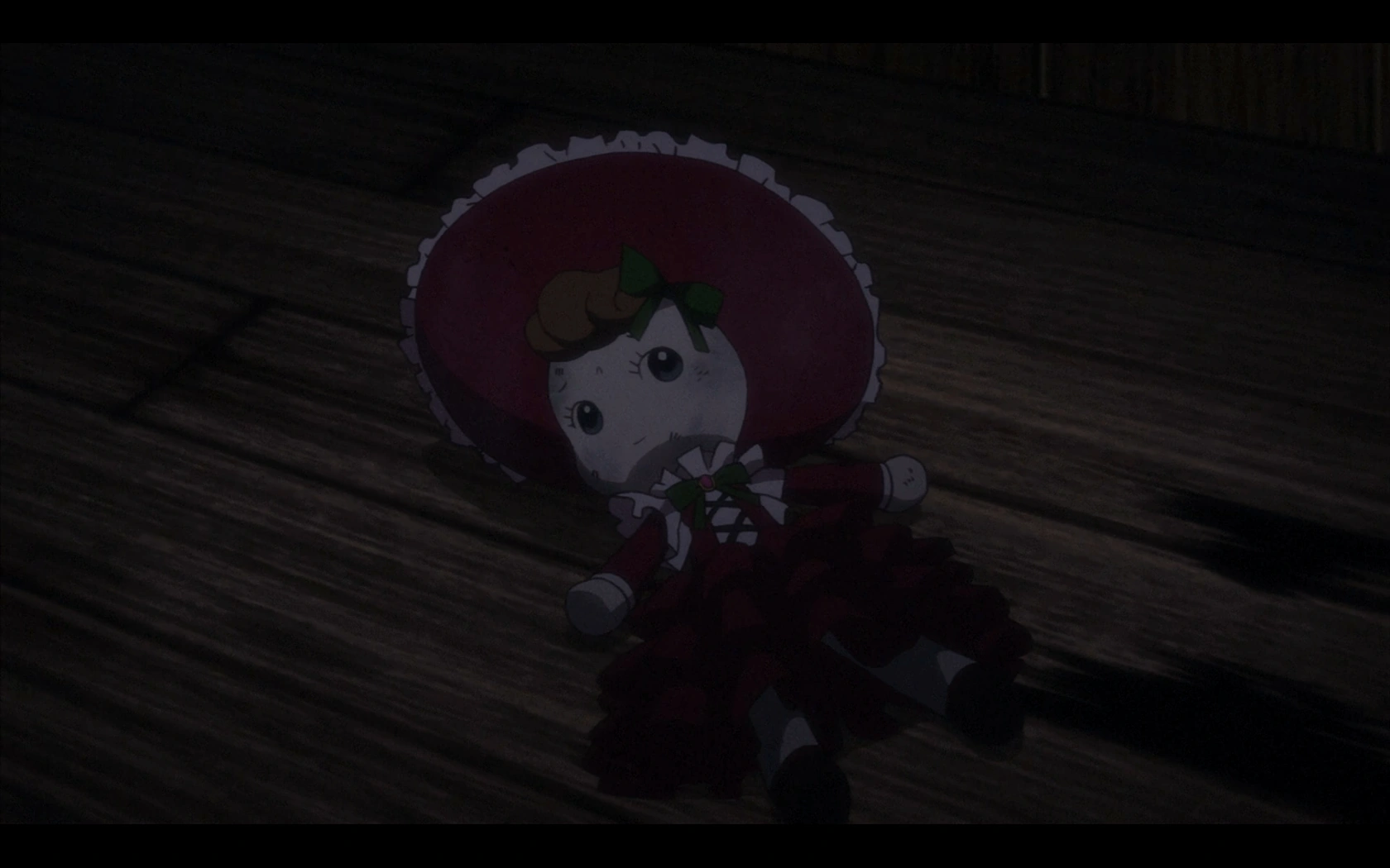 In the OVA the dolls design is yet again changed, now having a red dress with white details and a green ribbon with a pink gem on it. The hair are now curly and brown and the doll wears a frilly sun hat with another green ribbon on it.