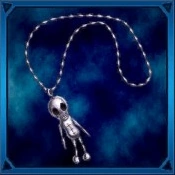 Calavera Necklace (カラベラネックレス Karabera Nekkuresu, lit. Skull Necklace) is an item found in Corpse Party: Sweet Sachiko's Hysteric Birthday Bash and Corpse Party: Blood Drive. It is a skeleton-shaped necklace made of wires, silver foam, and silver chains.