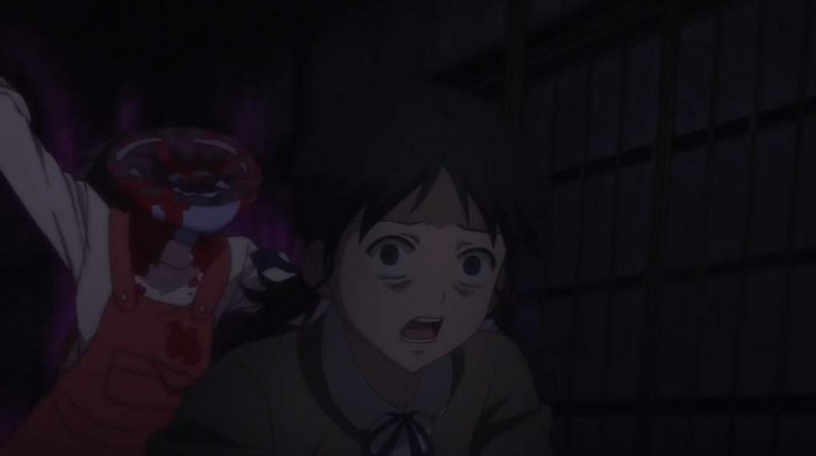 She was seen at the beginning of the episode being chased by Tokiko Tsuji with a pair of scissors before being stabbed.