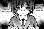 Naho and Sayaka hugging Haruyuki Inumaru's arms