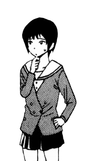 Noriko is a teenager with short black hair styled in a pixie cut with black eyes. She wears the Satsukiyama Academy school uniform consisting of a brown double-breasted jacket, a white sailor shirt with a black trim, and black skirt with knee-length black socks and black loafers.