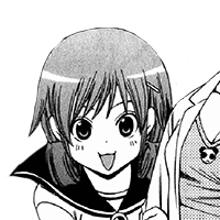 Seiko is a teenage girl with below-average height and build. She has light brown eyes and long brown hair (colored orange in the manga adaptation) that she styles into two curls on both sides of her head, just beneath her ears. She also wears a blue barrette on the left side of her head. Seiko has a natural kitty mouth/smile, which is especially noticeable when she's being devious and/or perverted.