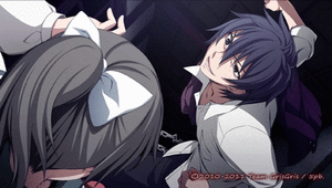 Later, the two run into Sakutaro. Yuka asks Yuuya to help her, and in response he simply kills Sakutaro. Smiling, he tells Yuka that he will protect her, since she is his precious little sister.